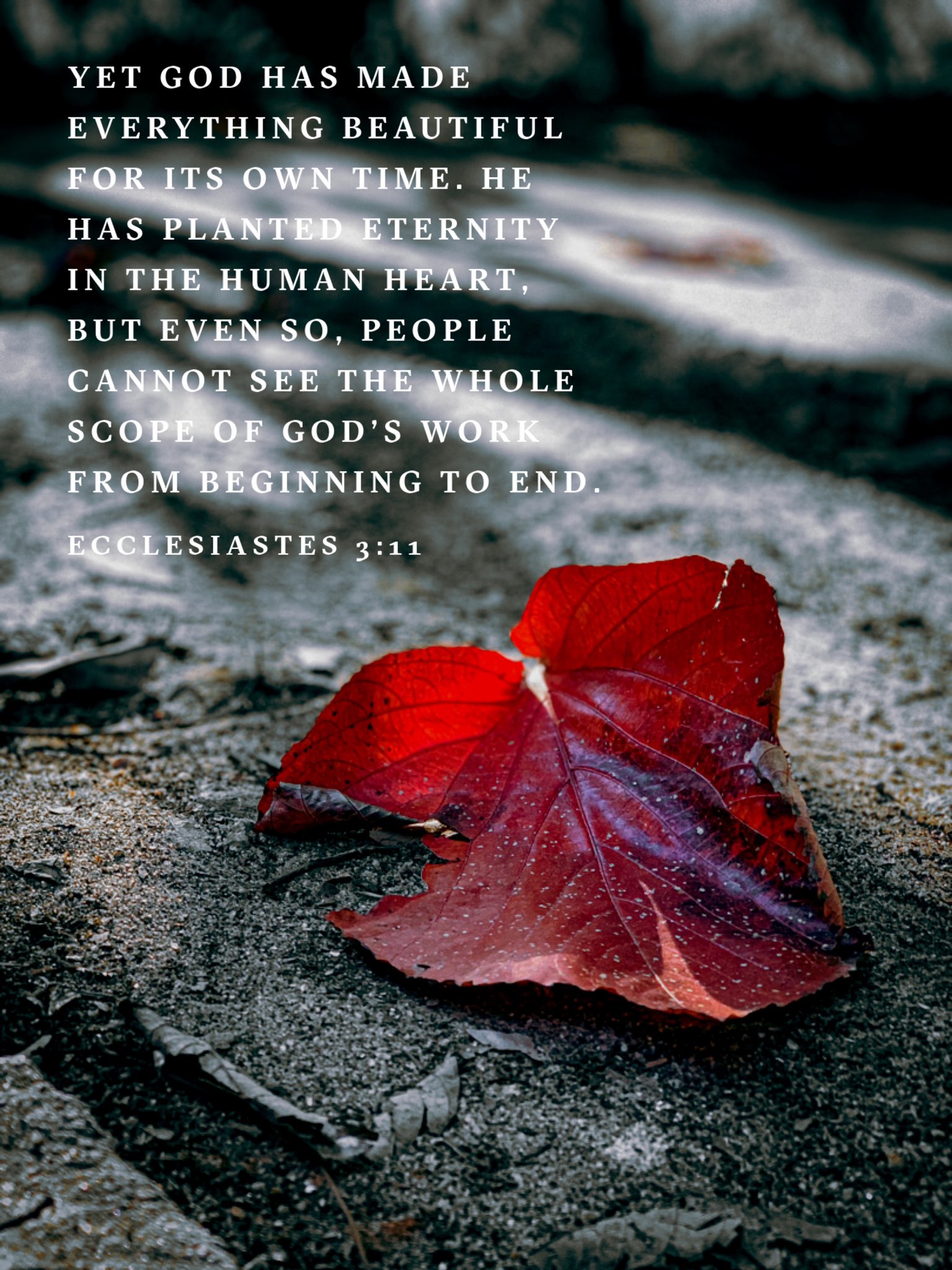 Ecclesiastes 311 AMP He has made everything beautiful and appropriate in its time. Ecclesiastes 311 NIV - He has made everything beautiful in its - Bible Gateway HebrewGreek Your Content Ecclesiastes 311 New International Version 11 He has made everything. Gain Living On Purpose Life Seasons.